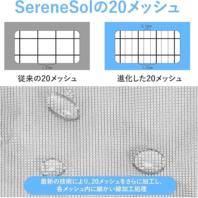 【細かい網目設計】本製品は、20メッシュのネットに各グリッドの真ん中に2本のラインを追加しました。これにより、換気や光の通り道を保ちながら、ほこりや花粉をより効果的に防げるようになります。