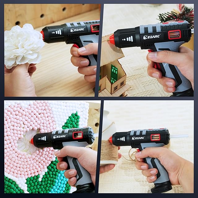 【15秒で急速予熱】EZARC グルーガンは高性能のセラミックヒーターを採用し、予熱時間は約15秒で、すぐに使用を開始できます。作業前の加熱時間を大幅に短縮し、いつでもどこでも使用可能です。