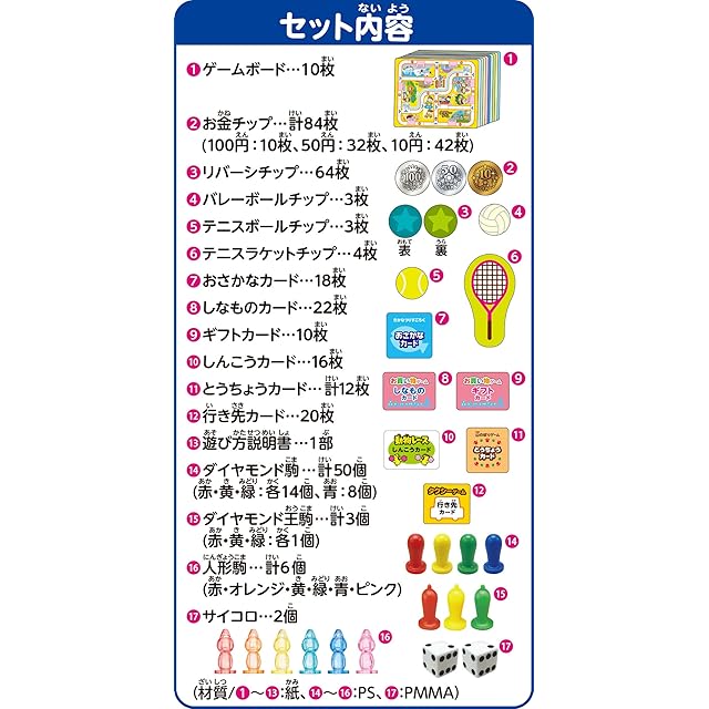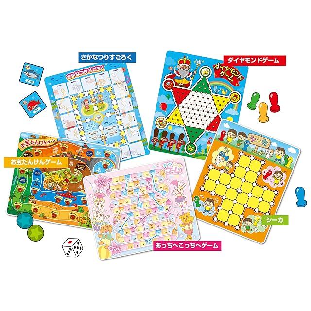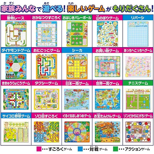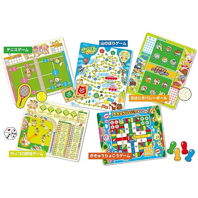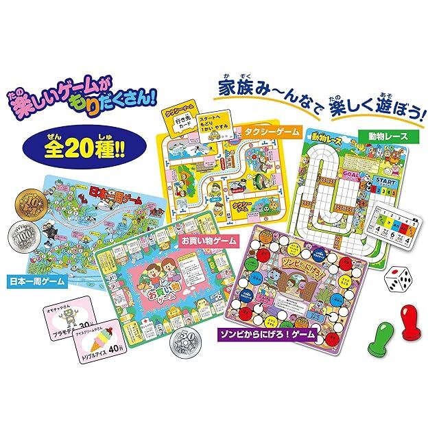 ゲーム内容紹介:お買い物すごろく/タクシーゲーム/日本一周すごろく/動物レース/ゾンビから逃げろ!ゲーム/さかなつりすごろく/山のぼりゲーム/おはじきバレーボール/シーカ/おにごっこゲーム/リバーシ/ダイヤモンドゲーム/ききゅうりょこうゲーム/あっちへこっちへゲーム/世界一周ゲーム/テニスホッケー/サイコロ野球ゲーム/ゾロ目すごろく/ぐるぐるほしあつめゲーム/お宝たんけんゲーム