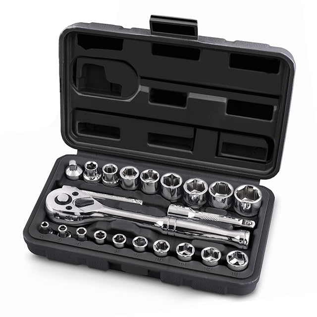 豊富なセット:3/8と1/4差込角ソケットセットで、よく使われるサイズを備えて、日常の車のメンテナンス、バイク整備などに十分。