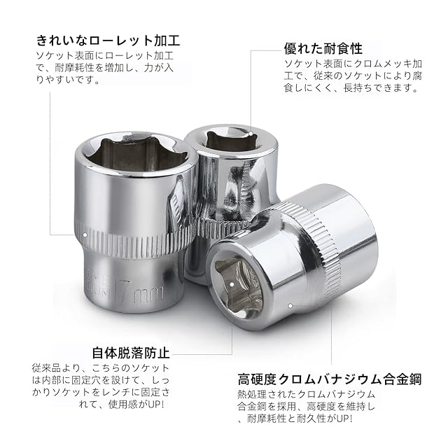 優れた耐食性:レンチとソケット表面にクロムメッキ加工で、従来品により腐食しにくく、長持ちできます。