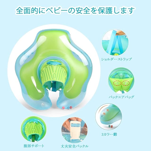 うきわの特徴:水中でのエクササイズ、水遊びや入浴をすることを目的として作られた子供浮き輪 。子供の脳神経を発達させるのを助けます。赤ちゃんのバランスと空間知覚に役立ちます。親子のコミュニケーションタイムに、全身運動で快眠&リラックス効果。