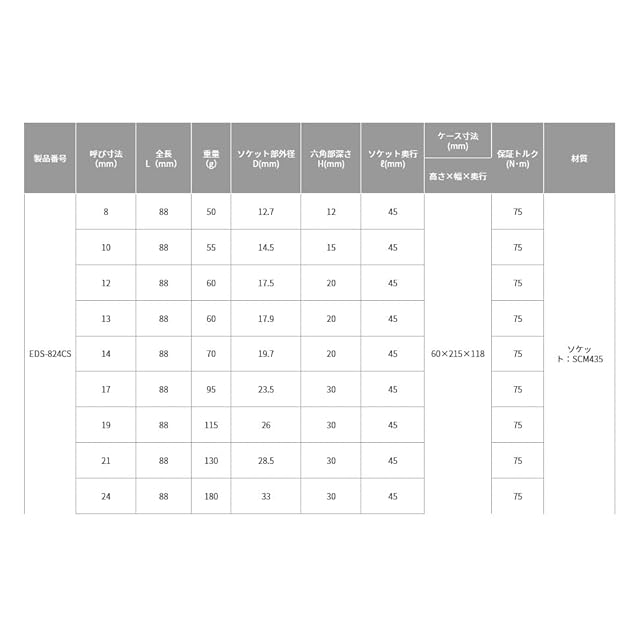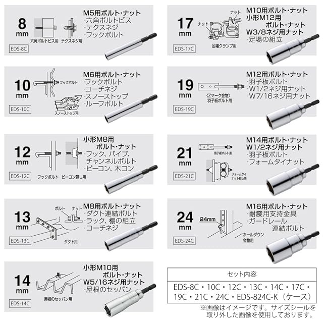 セット内容:EDS-8C・10C・12C・13C・14C・17C・19C・21C・24C、EDS-824CS-K(専用ケース)