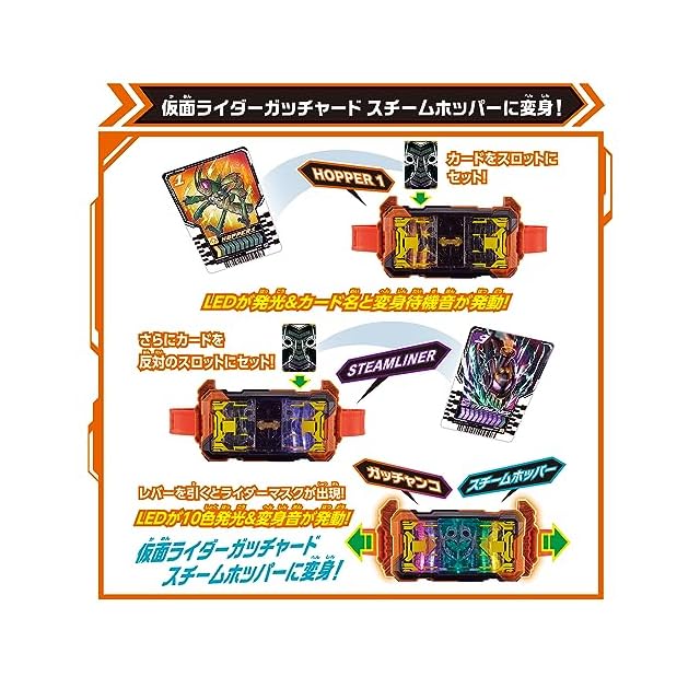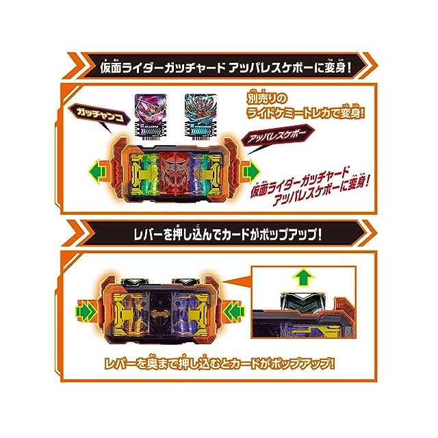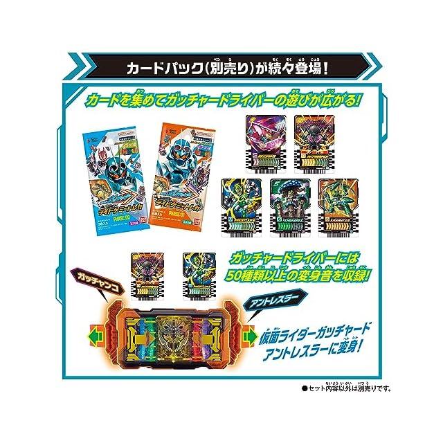 「変身ベルト DXガッチャードライバー」と「DXガッチャードローホルダー」のセット商品です。 ライドケミートレカが9枚付属します。