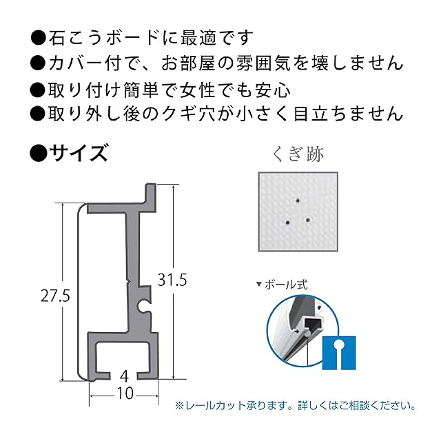 石膏ボード専用レールBWセット ボール式ホワイトミニワイヤー自在