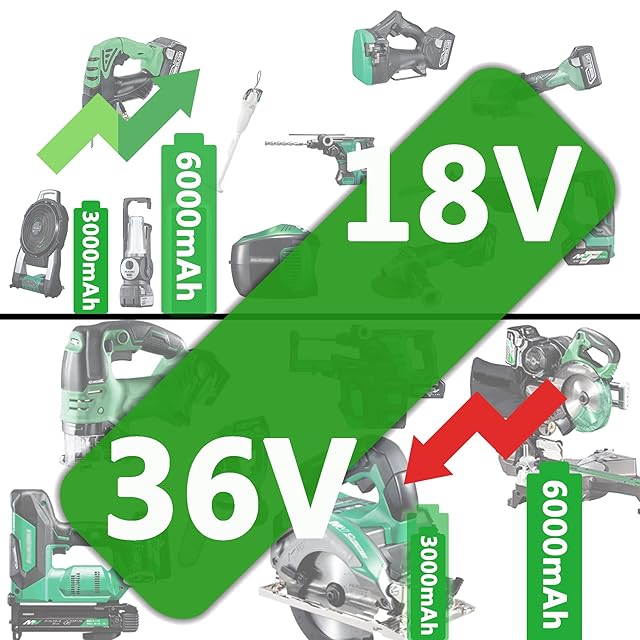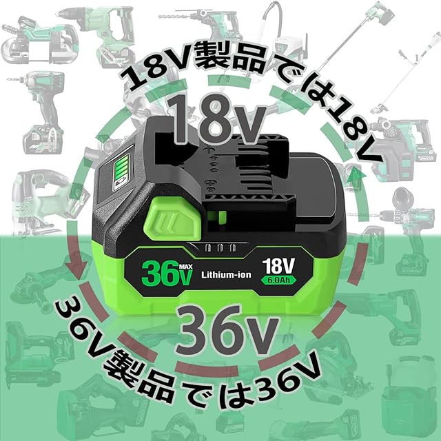 商品名:36V-18V 互換 ハイコーキ バッテリー 3.0Ah(36V)/6.0Ah(18V)電池装着で自動切替BSL36B18/BSL36A18/BSL36C18/BSL36A18Bに互換性あり