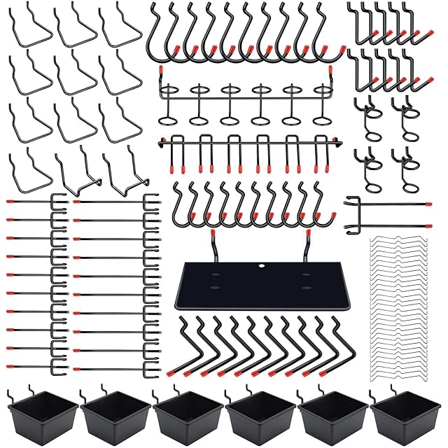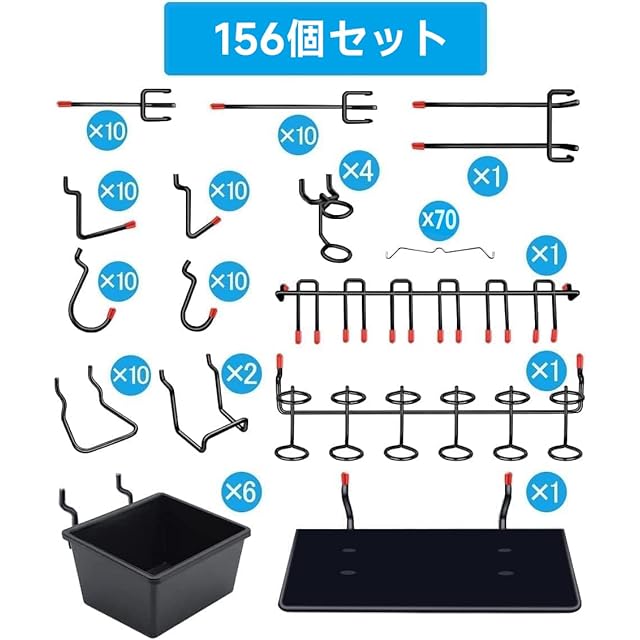 【パッケージ内容】有孔ボード用のスチール製T型フック150個セットです。 6つのパーツ収納ボックスが含まれています。