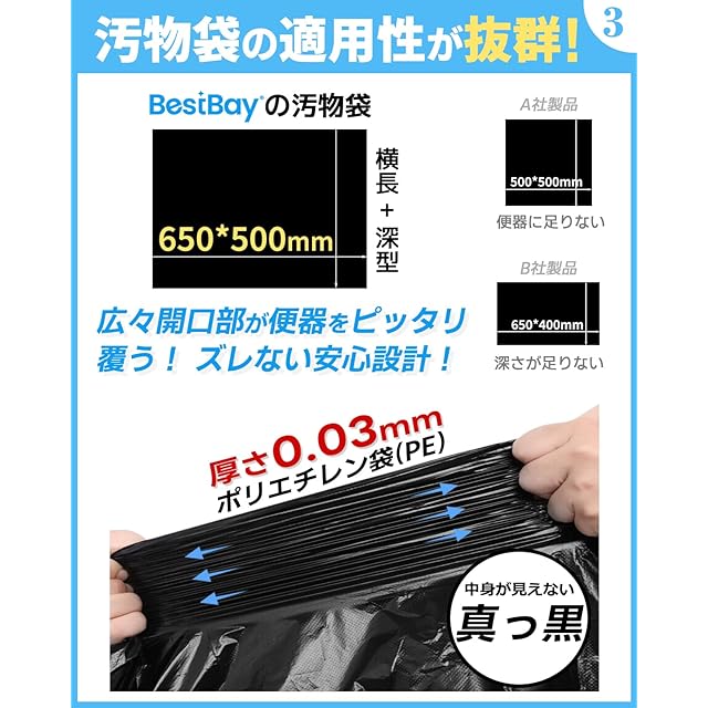 ✅【長期保存可能で環境にも優しい】BestBayの簡易トイレは、製造日から15年以上の長期保存が可能です。アルミパッケージで劣化しにくく、災害備蓄に最適!使用後のゼリー状廃棄物は可燃ごみとして処理でき、環境負荷を低減する設計となっています。防災備蓄と地球環境保護を両立させた安心の製品です。