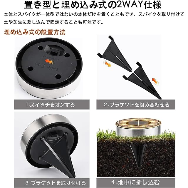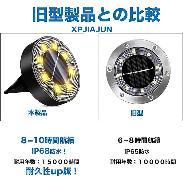XPJIAJUN ソーラーライト 屋外照明 IP68防水 LED 8 個セット 埋め込み式 ガーデンライト 防災 災害 作業用 アウトドア 電球色