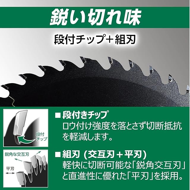 段付きチップと組刃で鋭い切れ味!165mm丸のこに最適!