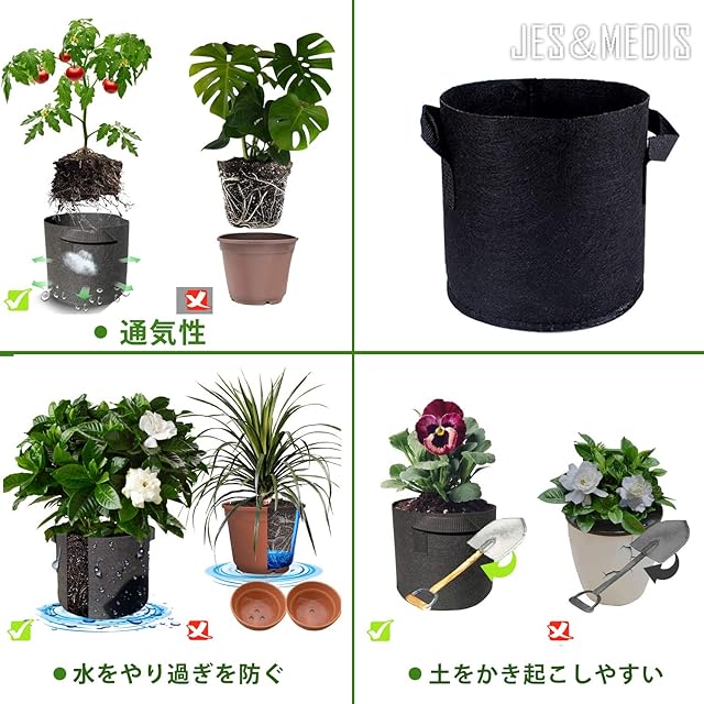✅ 高品質の厚手の不織布と裏地から作られ、通気性、浸透性が良い。植物育成に大きな役に立ちます!再利用可能な分解性材料で、簡単に腐食しない。軽量で、空間を占めない、ベランダや庭には使えます。花や果物などの植物を栽培でき、普通の植物栽培鉢よりもっと便利です。無公害、環境に優しい植え袋です。