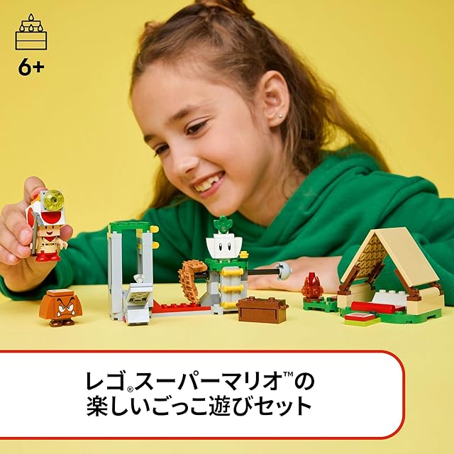 お子さま向けのレゴスーパーマリオ プレイセット – テントや焚き火の組み立てて、キャンプをしながら宝さがしをしたり、橋を崩して敵キャラクターをやっつけたり、キノピオ隊長と幅広い遊びが楽しめます。