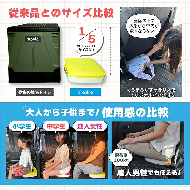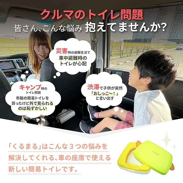 ✅【車の座席で使えるトイレ】スツーレから新タイプの 簡易トイレ が登場しました! 「くるま」の「 おまる 」名付けて「くるまる」です! くるまるは渋滞やアウトドア、車中泊避難時にも車内で使えるので車に1台あればいざという時のトイレも心配いりません。