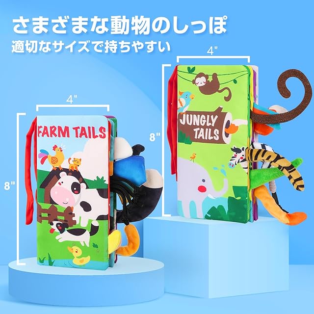 【!物事を知るための始まり!】赤ちゃんと一緒にこれらの動物のしっぽのテーマの布絵本を読んで、自然や動物に近づけることができます。子供用布の本は、言語能力、読書能力、感覚能力、コミュニケーション能力、そして豊かな想像力を刺激して、子供がスタートラインで勝つことができる、初期の知育玩具でもあります。【!お出かけ用には「ストラップ付き」や「洗濯しやすい」アイテム!】お出かけする際にお気に入りの布絵本を持っておくと、子どもがぐずってしまったときも助かります。ストラップ付き、ベビーカーやチャイルドシート・ママのバッグに付けられるので、落とす心配もありません。また、洗濯可能でいつでも清潔に使えるため、口に入れたり舐めたりしてしまう赤ちゃんも安心して使えるでしょう。赤ちゃんを連れてお出かけをする機会の多い方は、ストラップ付きや選択しやすくて大変便利です。