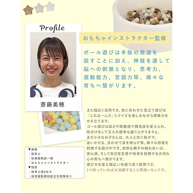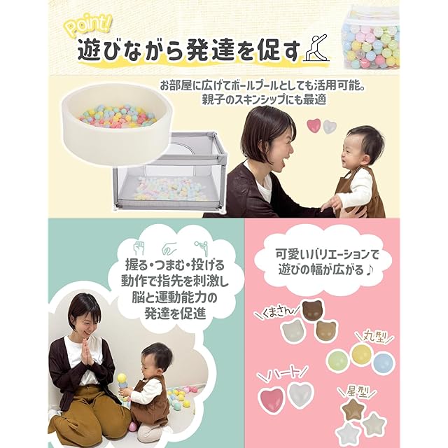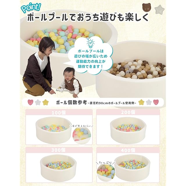 【遊びながら発達を促すカラーボール】指先を使うので脳に刺激を与え、発達を促します。ボールを投げて遊ぶことでコントロール力を育てます。・ボールプールは遊びの幅が広いため運動能力の向上が期待できます。