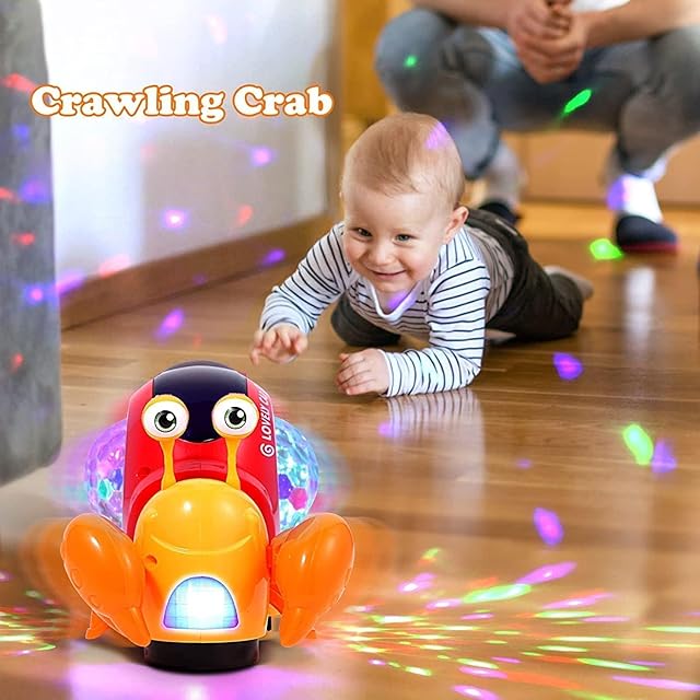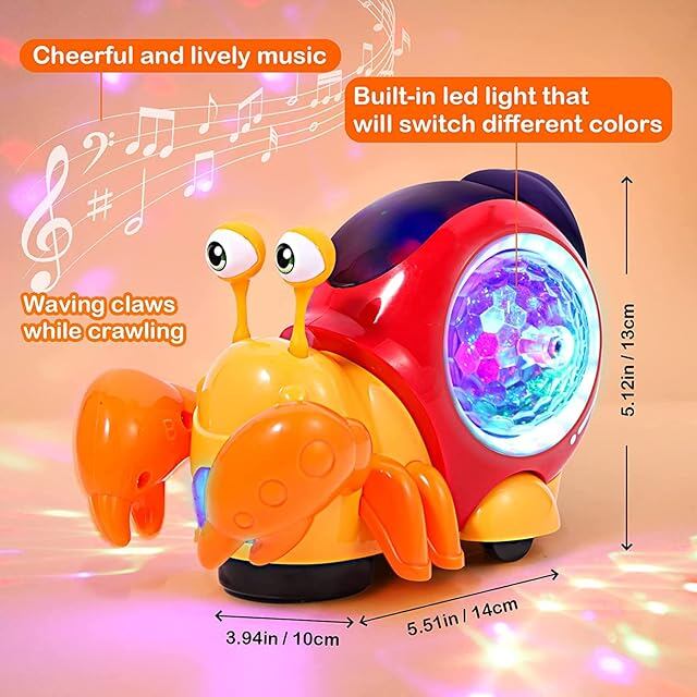 ✅【ミュージカルカニのおもちゃ】-LEDライトアップクロール&センサー障害物回避機能のための超クール、移動中に障害物に遭遇すると、時間内に反対方向に移動します。光と音楽はそれを子供たちにとって非常に魅力的にします。注:このおもちゃを水や湿気の多い環境で使用しないでください。