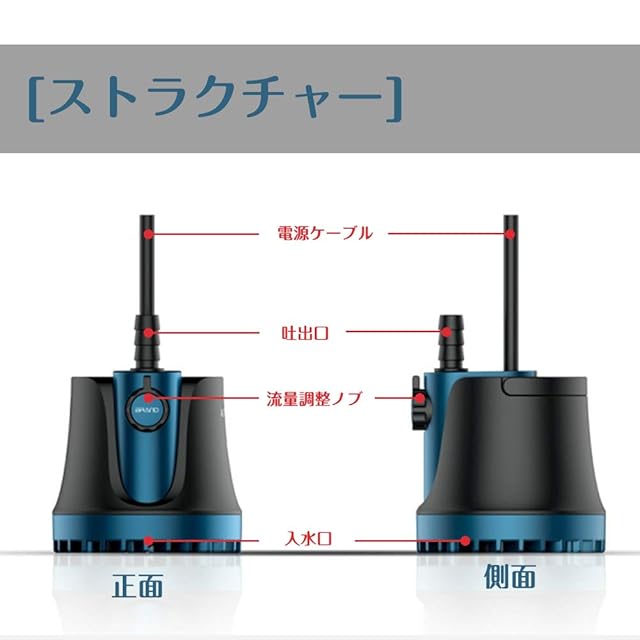 【規格】☆入力電圧:AC 100V/60Hz ☆電力:80W ☆最大揚程:3.5Mぐらい ☆吐き出し口外径:19mm&25mm ☆最大流量:3500L/H ☆騒音クラス:40デシベル以下 ☆電源コードの長さ:1.9M