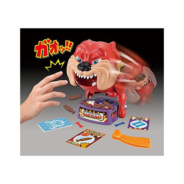 9つの骨のボタンをプレイヤーが順番に押していき、ハズレの骨を押すと「ちび犬ガオガオ」にかみつかれちゃう!かみつかれた人が負けのドキドキゲーム!