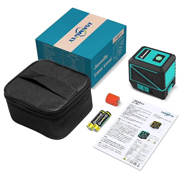 5. パッケージ内容及び品質:グリーンレーザー墨出し器 ×1、単 3 電池 ×2、5/8 1/4 アダプター ×1キャリングバッグ ×1、日本語取扱説明書 ×1。万が一商品に不具合があった場合は、弊社までご連絡ください。