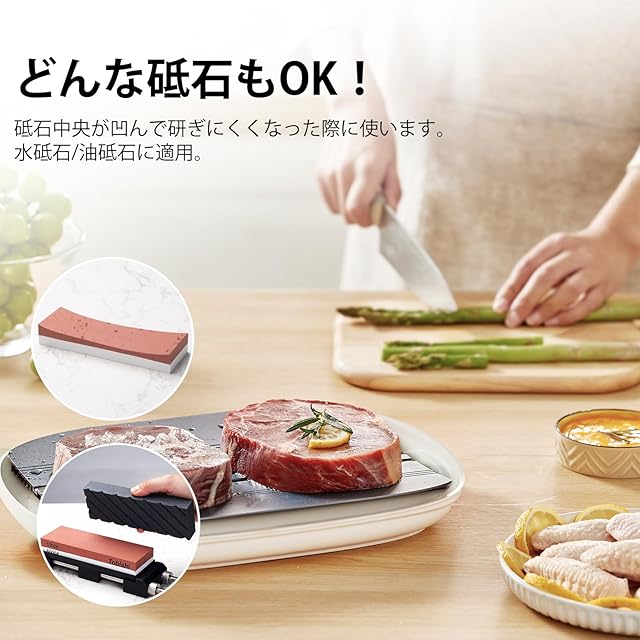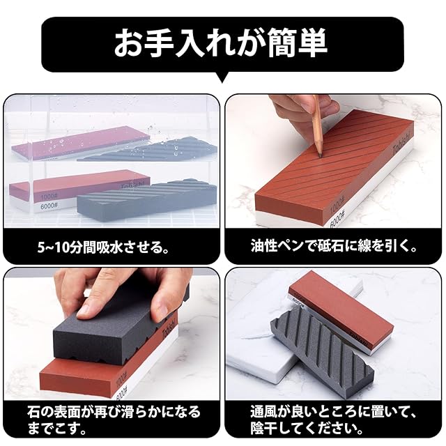 【ステンレス製砥石台】本製品の金属部分はオールステンレスで、ニッケルクロムなどの従来品と比べて錆びにくいです。また、ご使用後はサッと洗って水切りするだけでお手入れもとても簡単です。ご注意:油脂を付着させないでください。