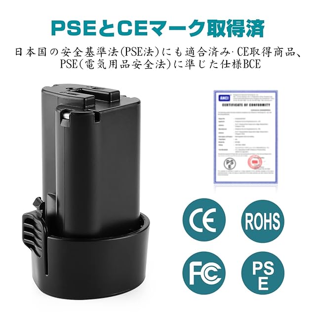 互換BL1013バッテリー:マキタバッテリーBL1013、 BL1014、194550-6、194551-4、195332-9。対応充電器:DC10WA。マキタの10.8V充電式クリーナーや掃除機やドライバドリルなど、幅広い製品に完全適用できます。このバッテリーはマキタ純正の充電器や工具に使用されています。交換品に使用される場合、互換性がない可能性があります、それを知った上で購入してください。商品を受け取った後に互換性がない場合は、お問い合わせください。