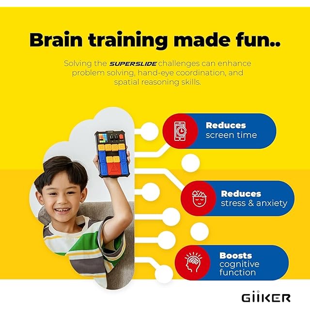 スーパースライドはインタラクティブなポータブルスライドパズルゲームです。LEDスクリーンの表示通りにブロックを配置し、ビッグスクエアブロックをディテクションゾーンにスライドするとゴールします。 500以上のレベルアップゲームが内蔵されていて、特にお子様の推理力やプランニングスキルの発達に役立ちます。最低限のスクリーンタイムで「学ぶチカラ」と「遊びゴコロ」を同時に育みます。 Learn Mode(ラーンモード):ゴールができなくても大丈夫。ラーンモードに切り替えるとゴールまでのステップが表示されます。 Challenge Mode(チャレンジモード):タイムリミットありのゲームに挑戦し、最高ランクを手に入れよう。継続はチカラなり。毎日挑戦して、スキルを磨こう。 数学のコンセプトとレトロなデザインのポータブルゲーム機は、単3電池2本(別売)で約60時間いつでもどこでもプレイでき、お子様やパズルプレイヤーへのプレゼントにも最適です。