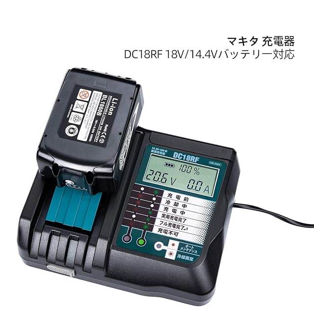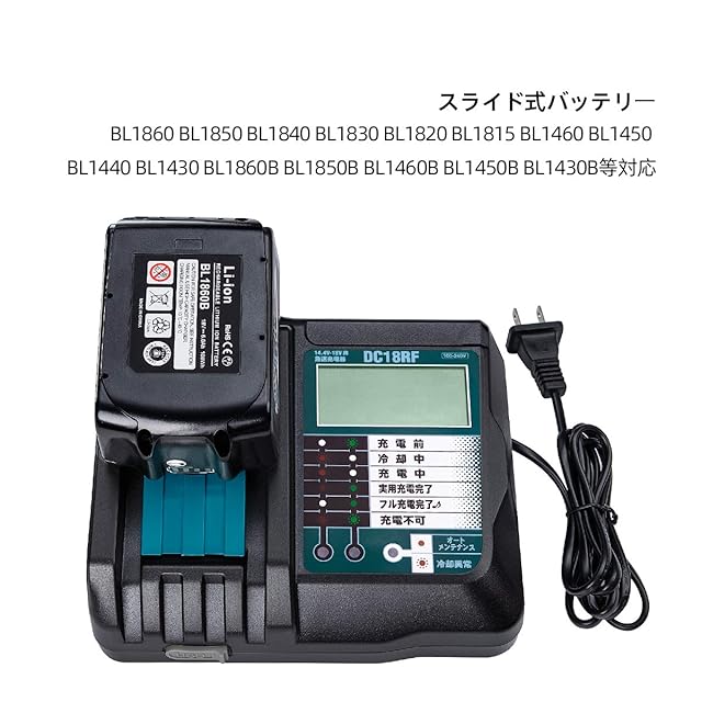 対応マキタ LXTリチウムイオンバッテリー:14.4V:BL1415/BL1415N/BL1430/BL1430B/BL1440/BL1450/BL1460B 18V:BL1815/BL1815N/BL1820B/BL1830/BL1830B/BL1840/BL1850/BL1850B/BL1860Bなど
