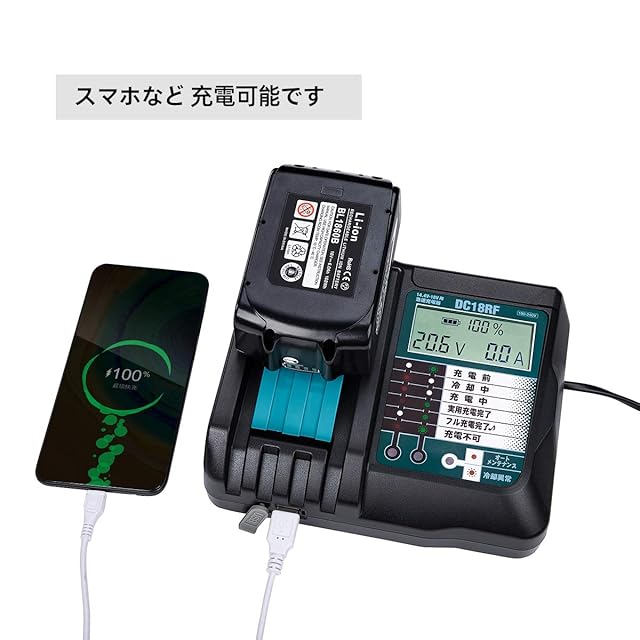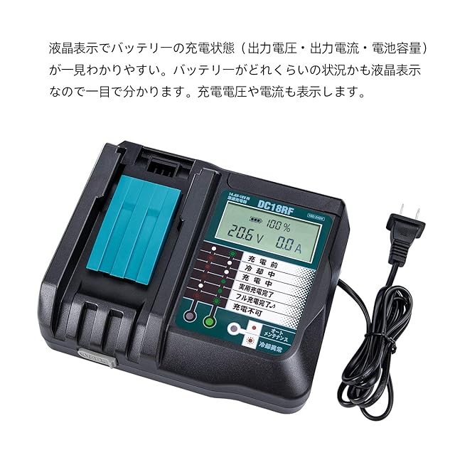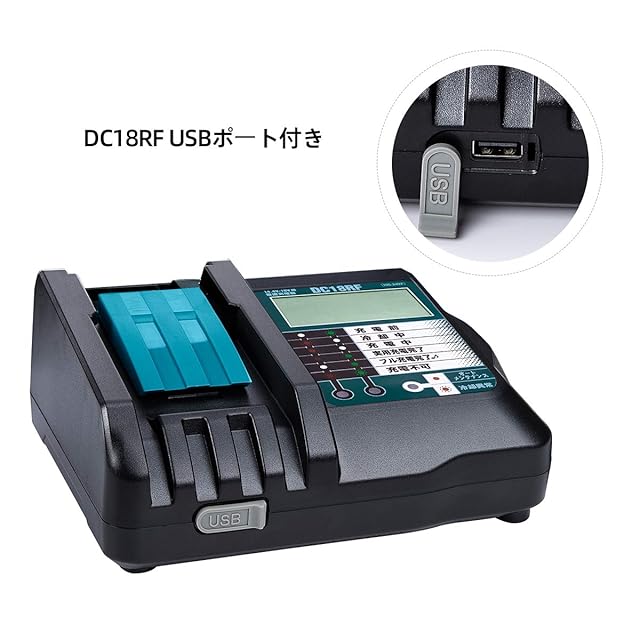 商品名:Hipoke 充電器 対応 マキタ DC18RF 互換 冷却ファン付き USBポート付き マキタ リチウムイオンバッテリ用 BL1430 BL1440 BL1450 BL1460 BL1815 BL1830 BL1840 BL1850 BL1860 BL1430B BL1460B BL1830B BL1850Bなど対応(充電器 本体のみ)