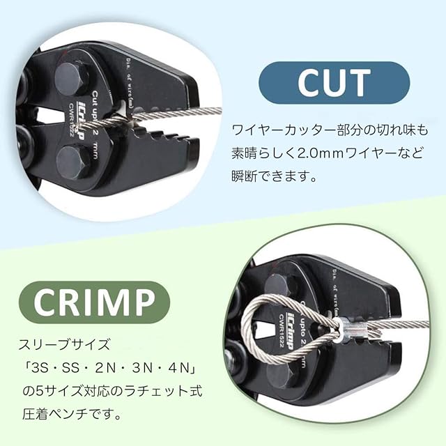 アイクリンプ(iCrimp) ラチェット式 ハンドプレッサー ダルマスリーブ かしめ機 ワイヤークランプカッター 圧着 切断 1丁2役!スリーブサイズ 3S SS S 2N 3N 対応 CWR1520-S | つむぎ屋