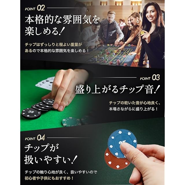♠Point03 盛り上がるチップ音! チップの乾いた音が心地良く、本場さながらに盛り上がる!