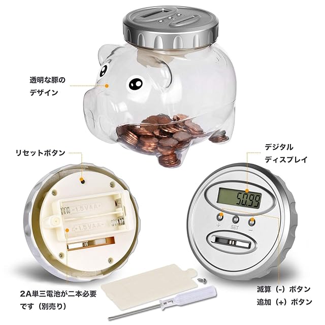 商品名:TWODAYS 透明 豚の貯金箱 デジタルカウン ちょきん箱 お札とコインを貯える 自動計算 バンク クリア