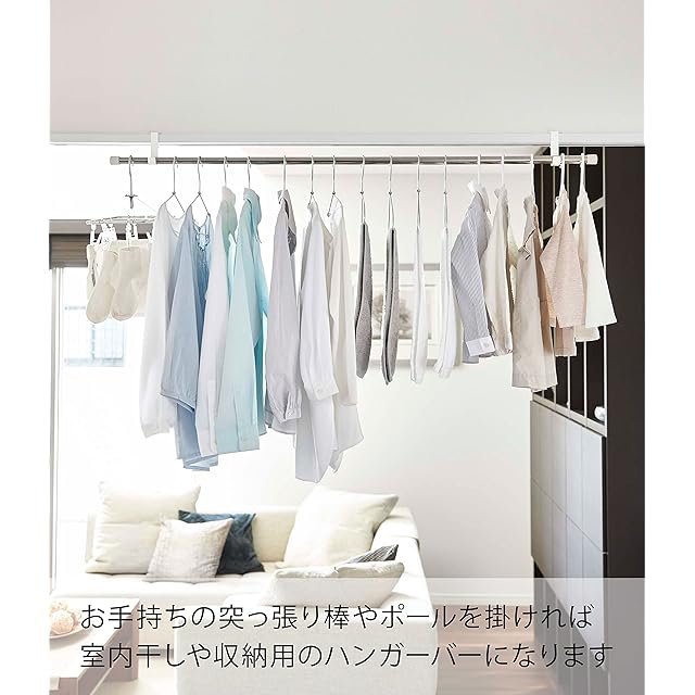 商品名:山崎実業(Yamazaki) 室内物干し ポールホルダー 2個組 ホワイト 約W2×D6×H9cm(1つあたり) タワー tower 鴨居に引っ掛けて ネジ固定 洗濯 物干し 5623
