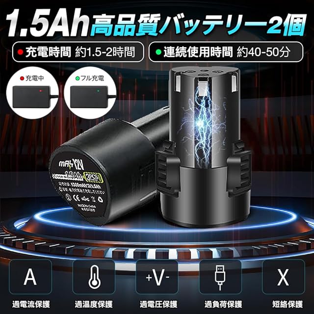 ▲【1.5Ahバッテリー2個付属★残量表示】YUUYOU充電式ポリッシャーには12V1.5Ahの大容量バッテリーが2個付属しており、交互に使用でき、作業途中でバッテリーが切れる心配がなく便利です。通常2時間でフル充電でき、フル充電すれば40分以上使用できます。ポリッシャー本体には残量表示ライトが付いており、スイッチを長押しして起動すると同時に、3段階の残量表示ライトが点灯します。バッテリーはどのくらい容量があるか一見だけで分かって安心します。また、充電状態表示LEDが搭載されています。充電中はLEDが赤色に点灯し、充電が完了するとLEDが緑色に点灯します。注意:バッテリーを取り外すときは、バッテリーの2つのレリーズボタンを上に向け、2つのレリーズボタンをしっかりと押してから、バッテリーを機械のベースから引き出します。初めて使用するときは、バックルがきつすぎて取り外しにくい場合があります。 3~4回インストールを繰り返すと正常に戻ります。