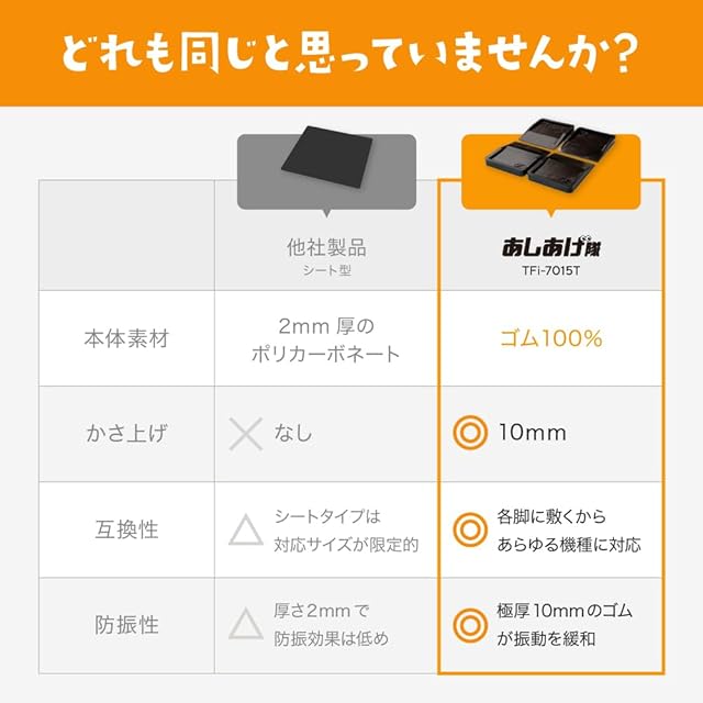 商品名:あしあげ隊 TFi-7015T 冷蔵庫など キズ凹み防止ゴムマット タツフト (旧:hmd-7015T)