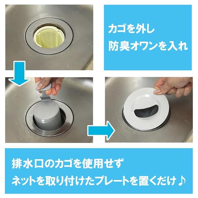 カゴいらず!シンクのゴミ捨てカンタン!市販のネットも使える排水口プレート!