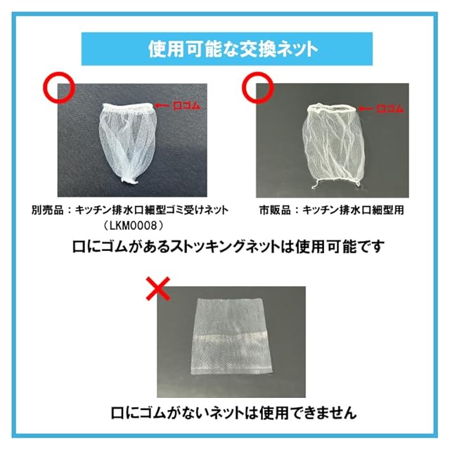 商品名:ノーブランド品ミニキッチン排水口ゴミ受けネット取り付けプレート・防臭オワンセットネット5枚つき排水口内径8cm用シンク流しふたカゴ生ごみ日本製かんたん置くだけLKM0007