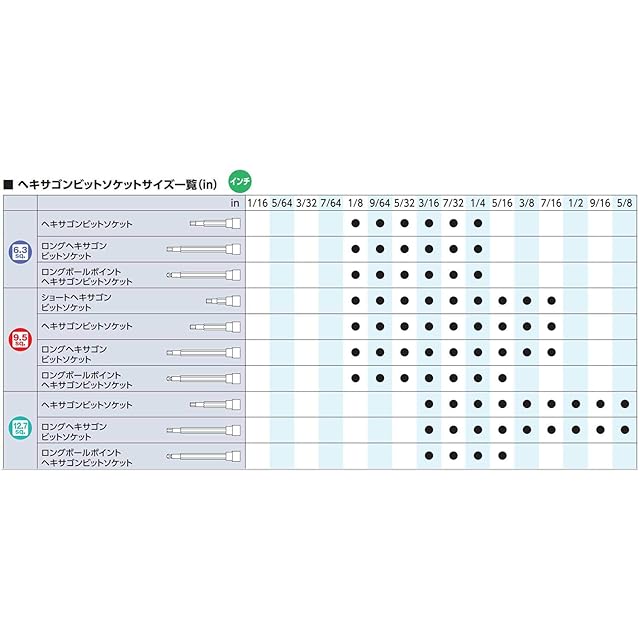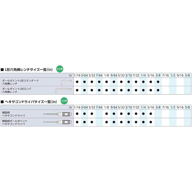 セット内容:1/16、5/64、3/32、1/8、5/32、3/16、1/4、5/16、3/8(インチ)