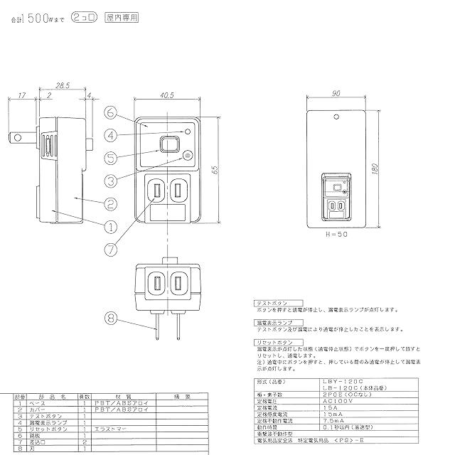 商品名:東芝ライテック 漏電保護タップ 住宅電気設備 LBY-120C