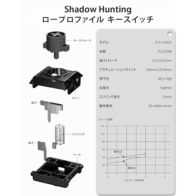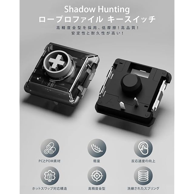 「Shadow Hunting ロープロファイル キースイッチ」 ホットスワップ対応で、弊店のレバーレスアケコンの本体への取り外しが不要、易くスイッチを交換してカスタマイズ可能なので、スイッチの摩耗を気にしなくてもいい、押す体感で、指の疲れもなく、様々な打鍵感を体験できます。