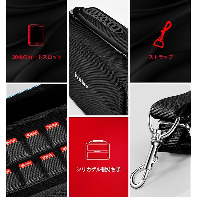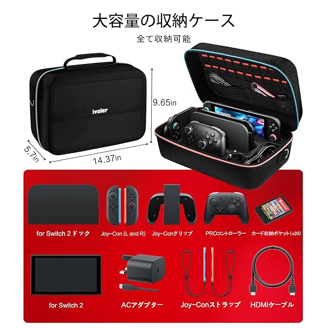 【Switch 2 モデル対応】 iVoler Switch 2 ケース スイッチ ケース 収納 防水 防塵 防汚 耐衝撃 全面保護 大容量 な収納力 持ち運び便利 ポーチ コントローラー/カード/ドック/ケーブル全部収納可能,ブラック