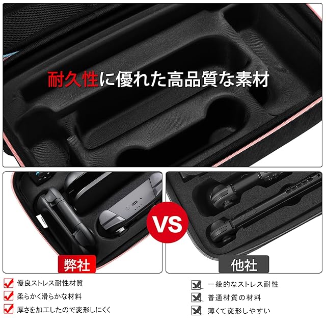 【優れた耐衝撃】内部のコンパートメントは高さ及び厚さを加工したので変形しにくいです。switch/switch有機elモデルを優しく包むように守られ、落としてしまった時やぶつけた時の衝撃も吸収してくれます。