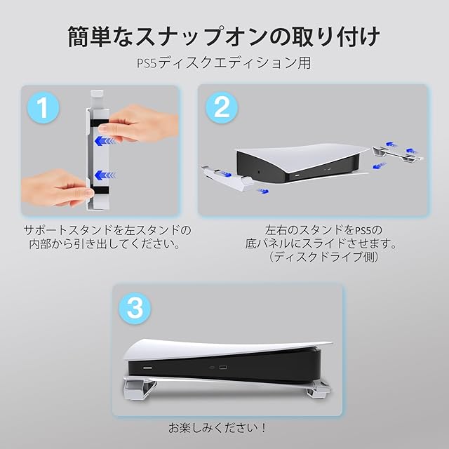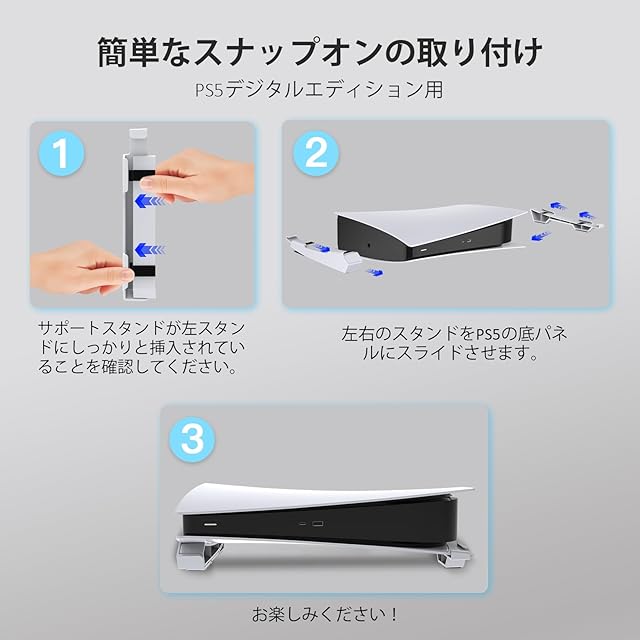 【PS5ディスク&デジタル版】スタンドはPlayStation 5ディスクとデジタル版の両方に対応しています。 取り付け手順は以下の商品説明の部分とマニュアルの両方に記載されています。