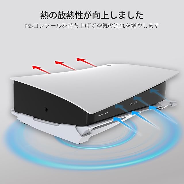 【PS5を保護】このスタンドはPS5コンソールを横置きに配置でき、ボトムパネルを傷から守ります。 これにより、コンソール周りの空気の流れが改善され、放熱性が向上します。注:本商品は2023新型PS5と互換性がありません