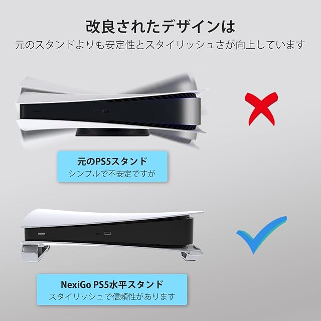 NexiGo PS5 アクセサリー 横置きスタンド [ミニマリストデザイン]、PS5ベーススタンド PlayStation 5 ディスク & デジタル版と互換性あり。 注:本商品は2023新型PS5と互換性がありません