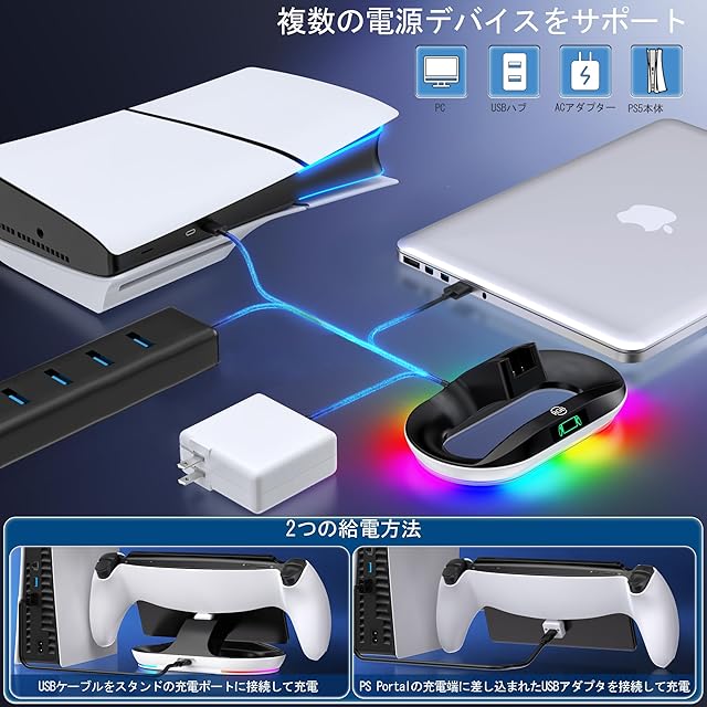 PS Portal 用充電スタンド PS5 Portal リモートプレーヤー 充電ドック 過充電防止 LEDライト付き 取り外し可能なType-Cアダプタ 取付簡単 省スペース PSポータル 周辺機器 アクセサリー | つむぎ屋