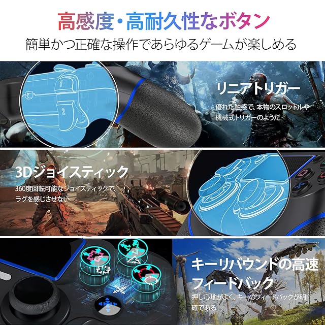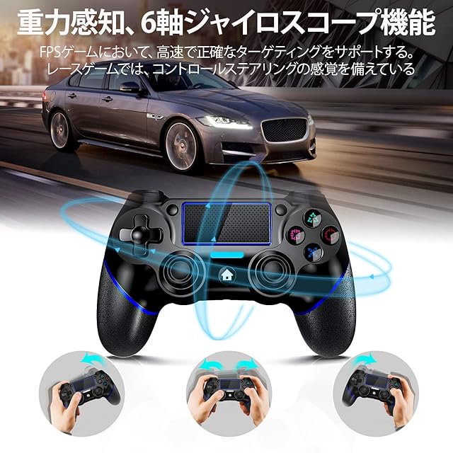 ◎【よりリアルなゲーム体験】ゲームパッド のハプティックフィードバックと変化を通じて、ゲーム内のアクションをリアルにその手で感じられる、を握りだけなのに、まるで本当にゲーム内で戦うかのような、これ以上の濃密な臨場感があふれるプレイ体験を実現します。内蔵する加速度センサーとジャイロスコープにより、例えばレースゲームでは、コントローラー ps4の傾きを感知し、傾けることによるゲーム操作も可能なモーションセンサー、ドリフトをもっとスムーズになり、より直感的なモーションコントロールを楽しめます。