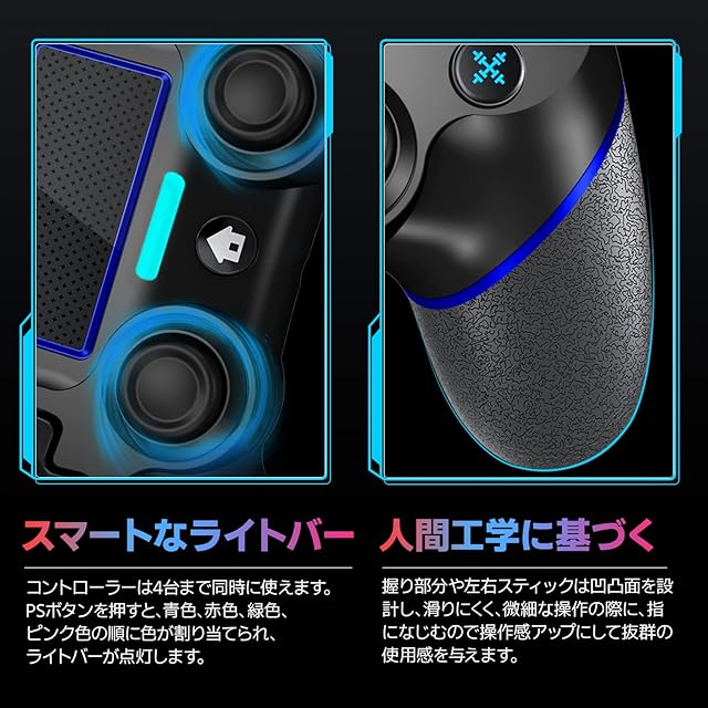 ◎【最適化されたスティック】お客様からの声に基づいて改善されたボタンレイアウトや触覚フィードバックで、細かいな操作も正確にフィットして、L2やR2ボタン使えやすくなり、どんなゲームでも活躍します。さらに、握り部分が黒い凹凸面設計を採用して、長時間使っても疲れにくい、滑りにくい、汚れにくいの革新なデザインです。このプレステ4コントローラーを使って、自分のゲーム記録を超えて、遊びの限界を超えて、もっと強くなりましよう。