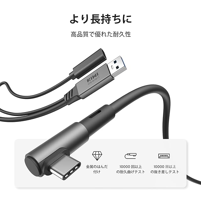 KIWI design リンクケーブル 充電可能 Quest 3/Quest 3S/Quest 2/Pro/Pico 4/Pico 4 Ultraに対応 linkケーブル 5M usb c ケーブル アクセサリー 5Gbps 高速データ転送 L字型 USB 3.0から USB-C Type C 耐久性のある VRヘッドセット/PC/Steam VR用 (ブラック) | つむぎ屋
