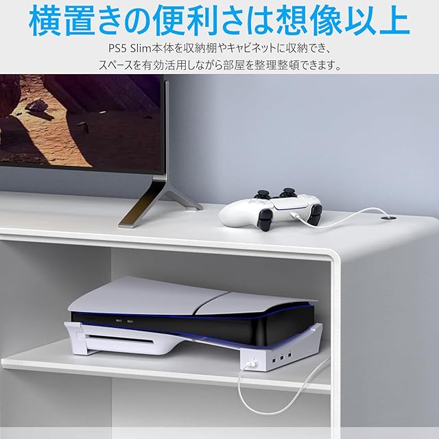 【取り付け簡単】PS5 Silm本体を横に置き、両側に2つの水平スタンドを簡単に取り付け、手間がかかりません。本体を水平に置き転倒落下などの危険を有効的に避けされ、PS5 Silmを収納棚などのキャビネットに収納でき、お部屋の省スペースとスッキリ整理することができます。【品質】ご購入日より1ヶ月品質がございます。もし、商品初期不良などの場合、弊社を先にご連絡させていただきます。ほかの問題もございましたら、どうかお気軽にお問い合わせください。