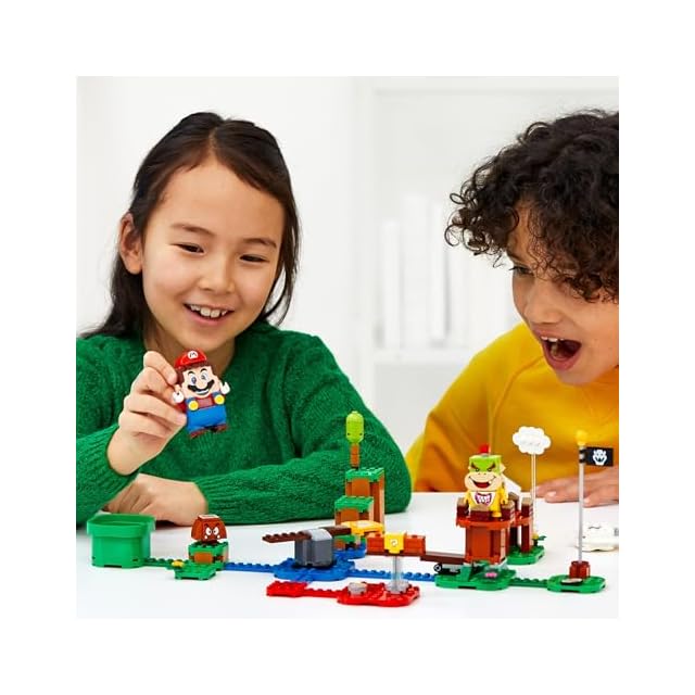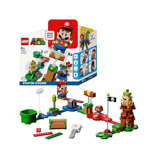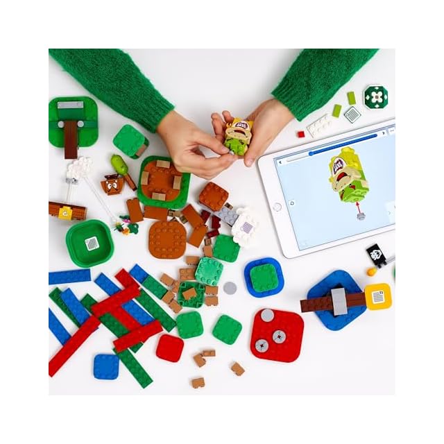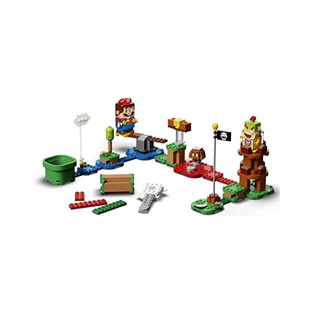液晶画面とスピーカーで瞬時にストーリーを表現出来るフィギュアが登場。プレーヤーはレゴ マリオ を地点の土管からゴールポールまで動かします。途中、ジャンプや宙返りをしたり、雲に乗ったり、ハテナブロックを踏んだり、さらには人気のレゴマリオキャラクターのクリボー、クッパJr.との戦いを楽しんだりしながらコインをゲットしていきます。子どもたちの大好きな任天堂キャラクターとチームを組んで、現実の世界で冒険することができます。 無料のアプリを使うと、組み立てが簡単に! ズームや回転機能を備えているため、ブロックおもちゃの新しい組み立て方や、遊び方を学ぶことができます。友達とアイディアの共有も可能に! スターターコースを並べ替えたり、そのほかレゴ スーパーマリオの製品と組み合わせることで、より難易度の高いレベルに挑戦できます。友達といっしょに組み立てたり、対戦することも可能。231ピース。